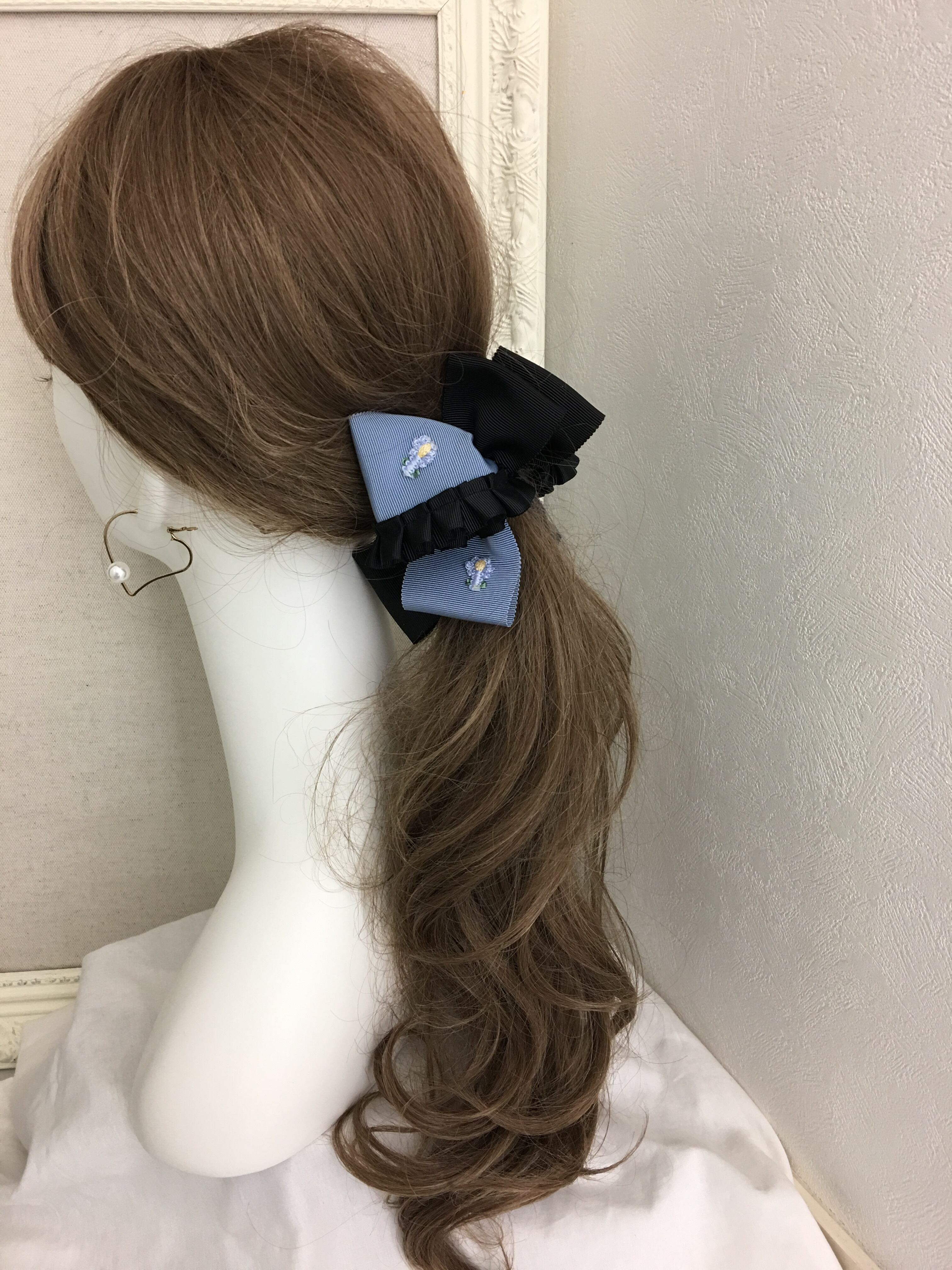 アイスブルーに黒のフリルが付いたバナナクリップです。