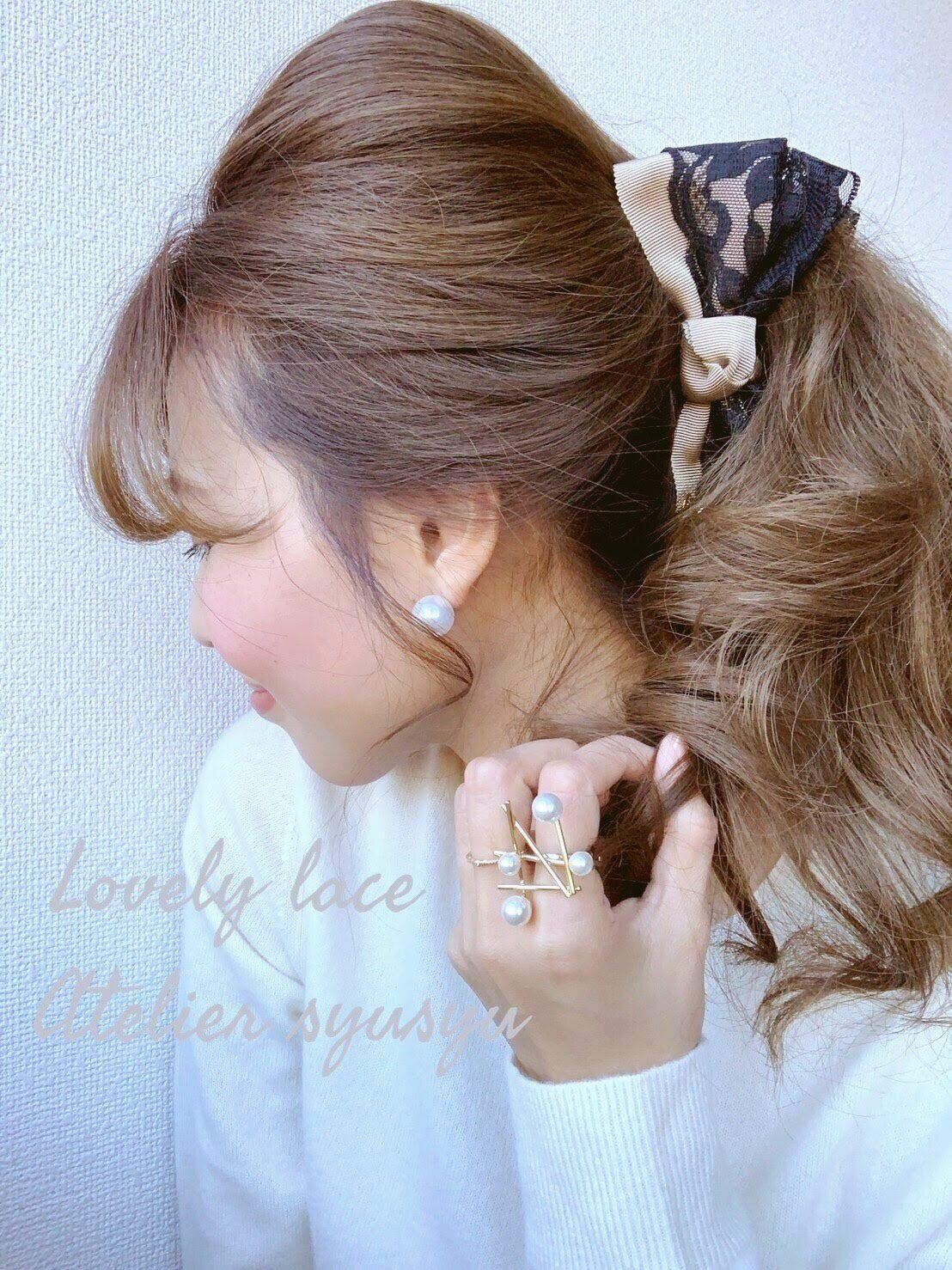 髪を挟んでレースが半分透けるようにデザインいたしました。
