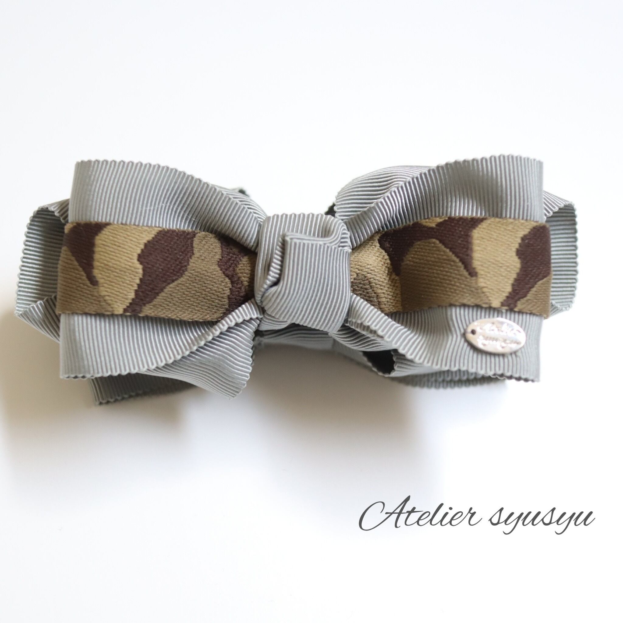 アーミー柄に薄いグレーのリボンを組み合わせています。