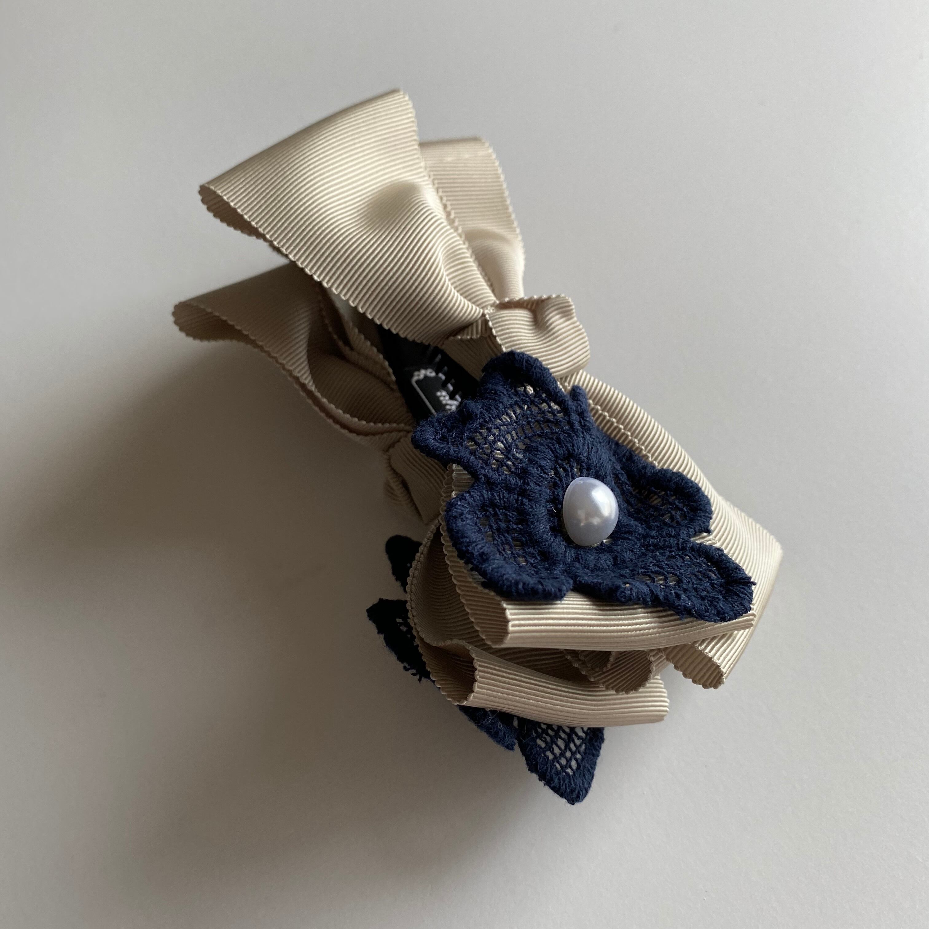 着用しますと、ポピーのお花のモチーフがリボン部分の下についてさりげなくオシャレです。